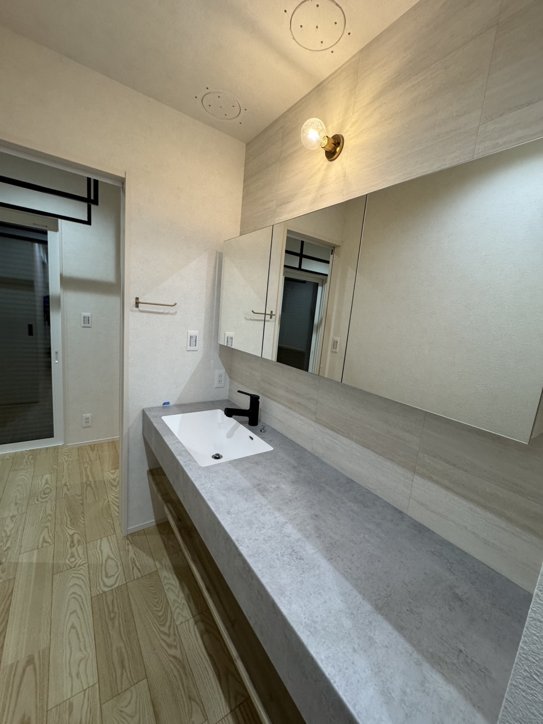 洗面化粧台を新しく入れ替えて、明るく清潔感のある洗面スペースに。